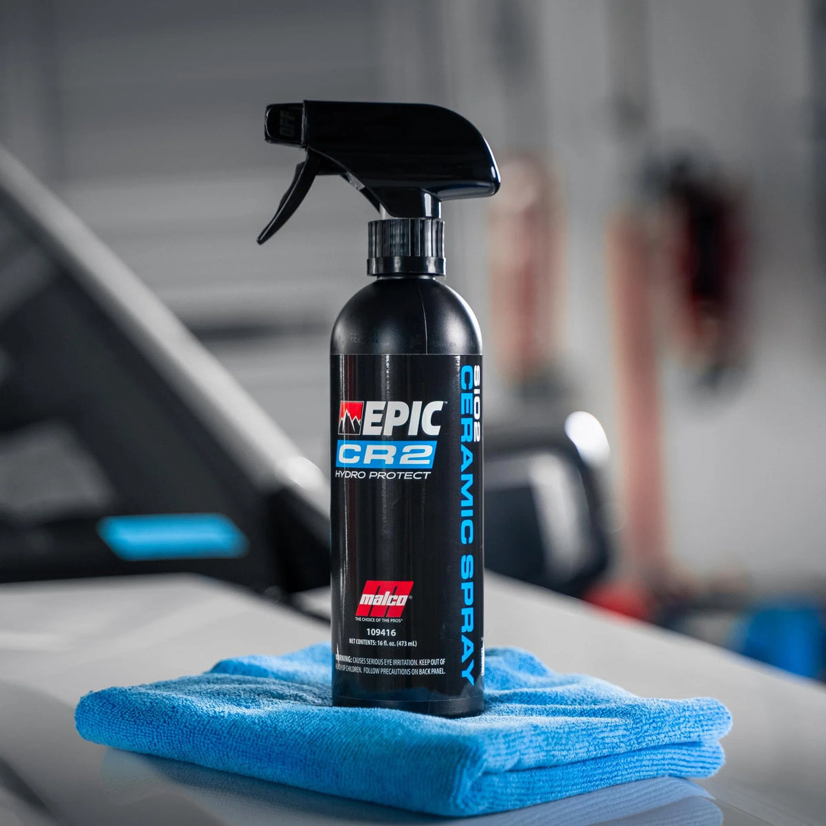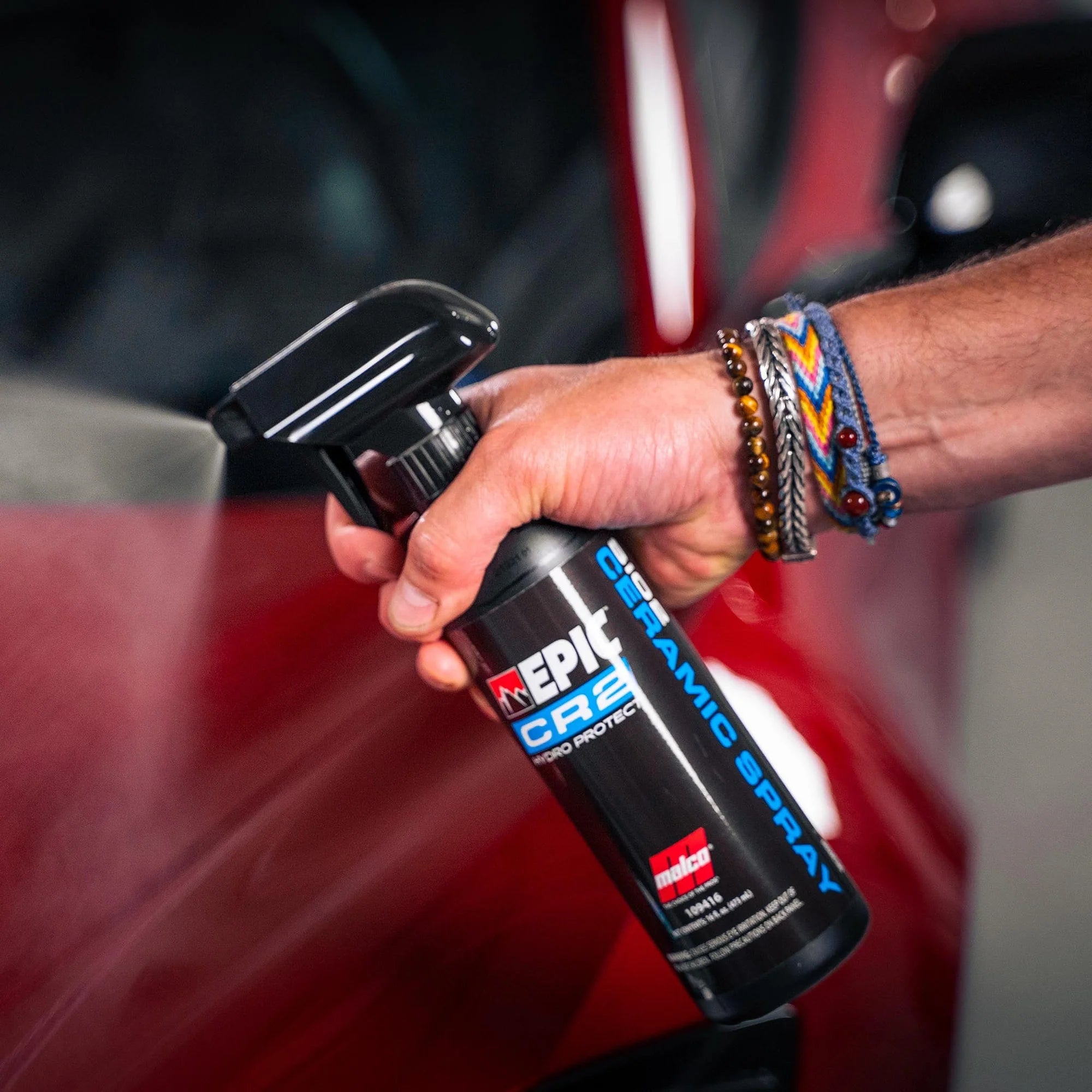 EPIC® CR2 Hydro Protect Ceramic Spray Coating is a spray-on SiO2 ceramic coating booster and spray wax designed to shine, protect, and beautify a vehicle. This long-lasting ceramic spray coating adds a hydrophobic barrier to the vehicle’s surface to absorb UV rays, repel contaminants, and easily sheet off water. As the final component of the EPIC® Ceramic System, CR2 Ceramic Spray Coating can be used to boost an existing ceramic coating or as a stand-alone ceramic spray wax. Since EPIC CR2 is a ceramic spray coating, it is a great product for DIY car enthusiasts who want the high-gloss shine, protection, and hydrophobic properties of a ceramic coating without the hassle of its application. EPIC CR2 is one of our best-selling professional-grade spray waxes because of the high quality of the product, the easy application, and the great shine it leaves behind on coated and uncoated automotive surfaces.